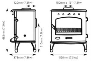 Heat Output : 7.3kW Wood, 6.6kW Smokeless