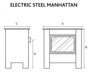 The small and medium Electric Steel Manhattan stoves have clean lines and a realistic log-effect fire. (See separate listing for Medium)