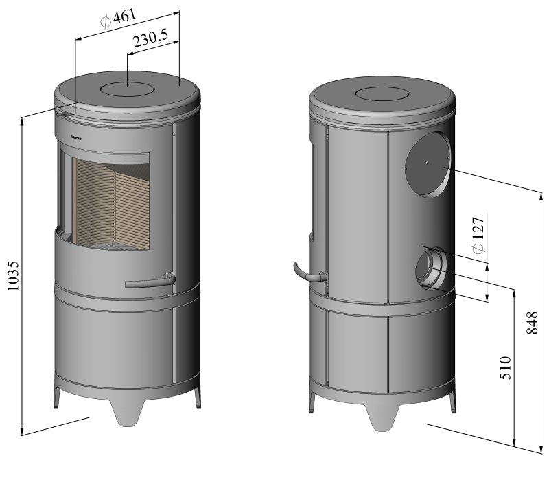 The stove has a beautiful shape with feminine transitions and a very large door glass. In addition, the design includes a very practical drawer below the window