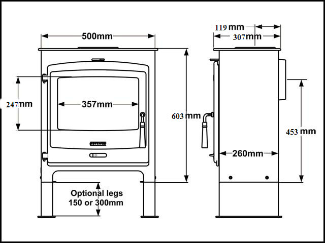 With a choice of 2 stove colours; charcoal or black, and 3 leg heights, this is a highly versatile stove. (Shown here with standard legs)