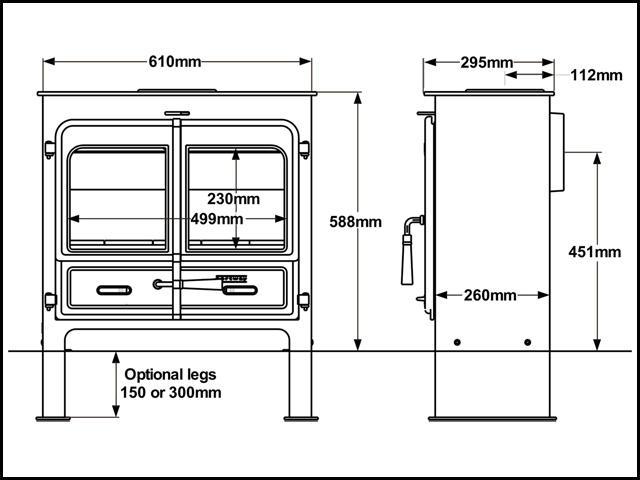 With a choice of 3 leg heights, this is a highly versatile stove. (Shown here with standard legs)