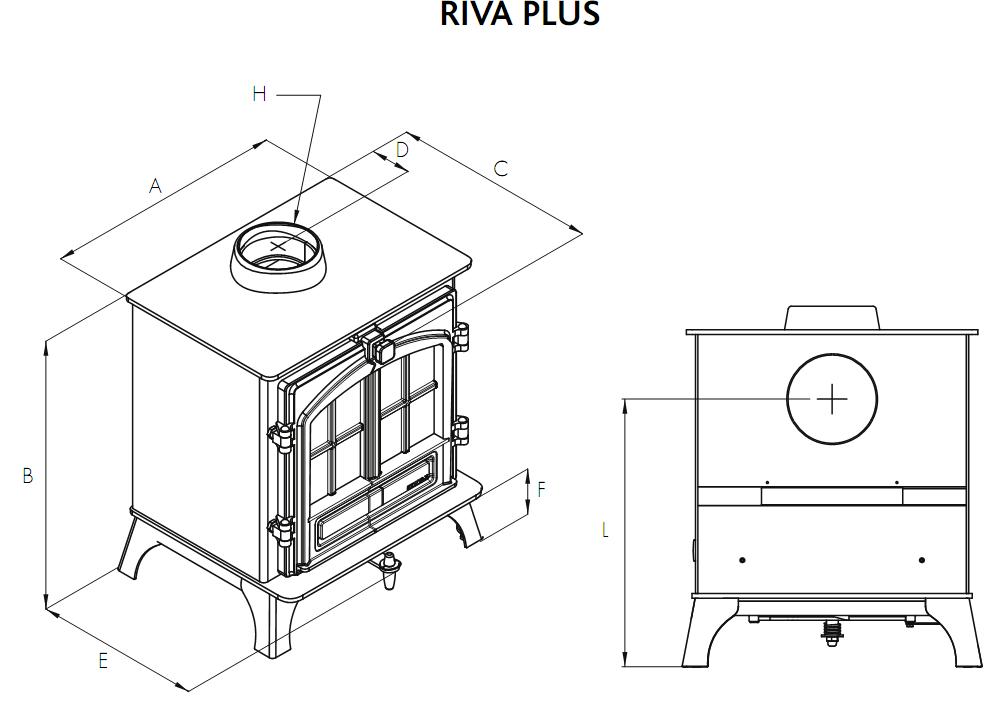 The Riva Plus Medium Woodburning stove is ideal for medium to larger sized rooms. (Click on image to enlarge)