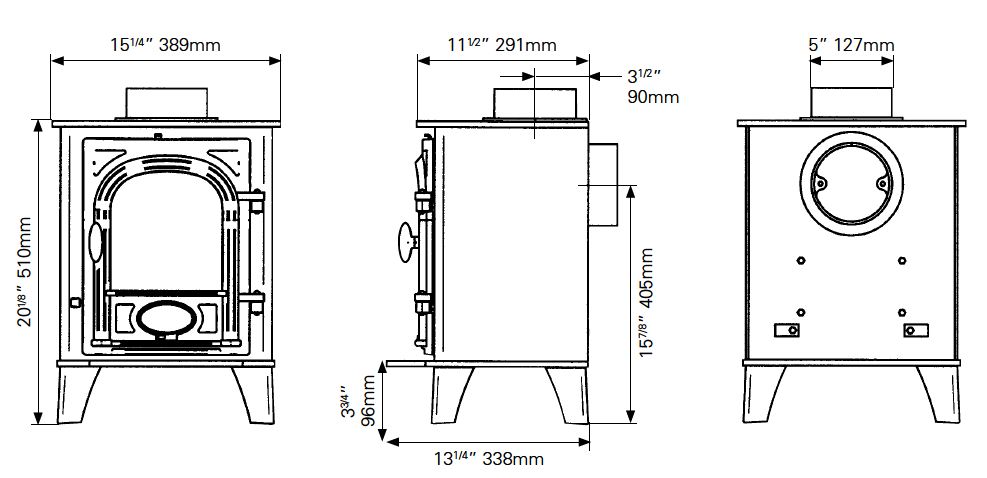 The Stovax Stockton 3 is a mini stove specially designed to fit snuggly in to a standard 22" x 16" wide British fireplace opening with the chair brick removed.