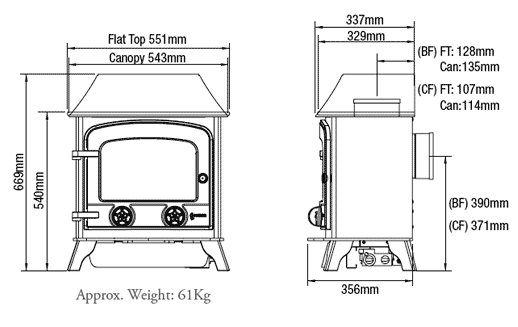 Conventional flue with coal effect, balanced flue version with logsas shown). Please see separate listing for Balanced flue Exe Stove.