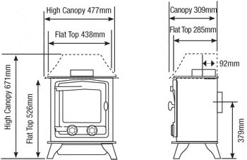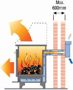 The Yeoman Exmoor Balanced Flue system means having no chimney is not a problem, as it draws combustion air from outside through its twin pipe system. Rear exit only on this model.